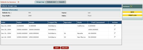 which shows all of the vehicle usage logs for a particular vehicle. See earlier in this section 3.3 for how to
