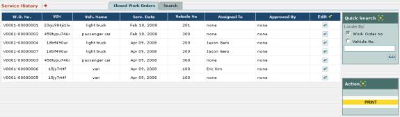 or vehicle number click in one of the circles named Work Order no, and Vehicle