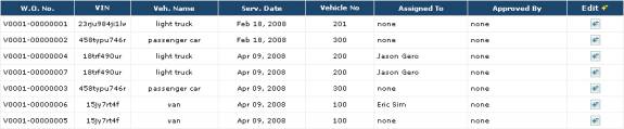 screen), you’ll see the list of completed vehicle work orders: