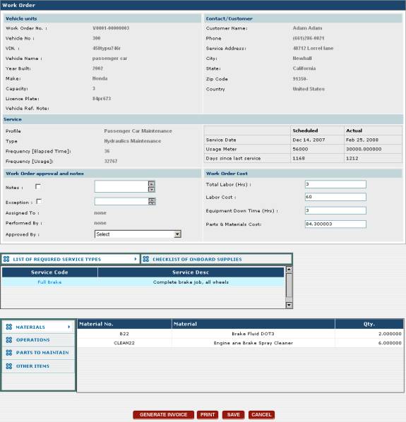 This screen is very similar to the one described in section 3.5.2 Creating Vehicle Work Orders