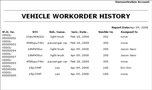 Print the work order history for vehicle maintenance