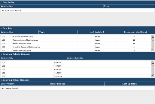 that is past due and any expiring vehicle and drivers’ licenses. For each maintenance event that is due