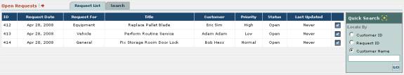 status of the request is shown under the Status column. The status will show as “Open” if no work