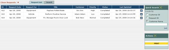 following screen where you can see all of the customer maintenance requests