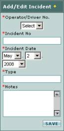 record of an equipment or vehicle operator, use the Add/Edit Incident
