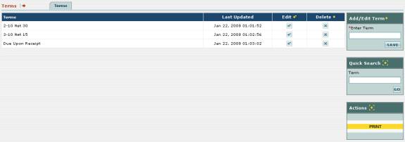 Fig 7.8-1 – “Terms” under the “Utilities and Lists”