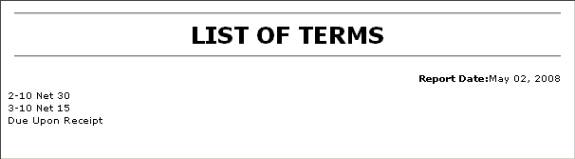 list of payment terms.