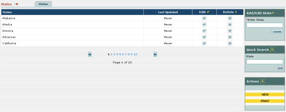 To edit an existing state, first locate the state in the list